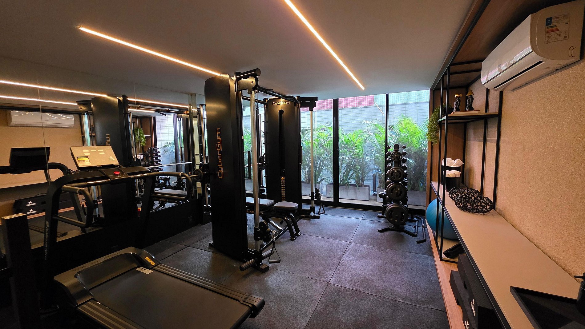 Academia equipada para manter sua rotina de treinos;