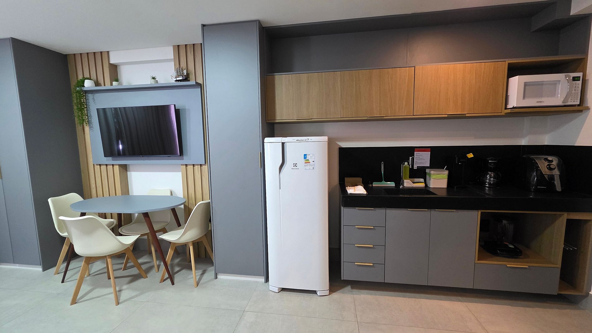 O studio foi planejado para unir praticidade e conforto em um ambiente moderno e acolhedor. Conta com cama de casal aconchegante, sofá-cama extra, ar-condicionado, Wi-Fi, TV e cozinha equipada com utensílios para preparar suas refeições. A decoração clean e os detalhes pensados com carinho tornam o espaço especial, garantindo uma estadia agradável tanto para quem viaja a lazer quanto para quem precisa trabalhar.
